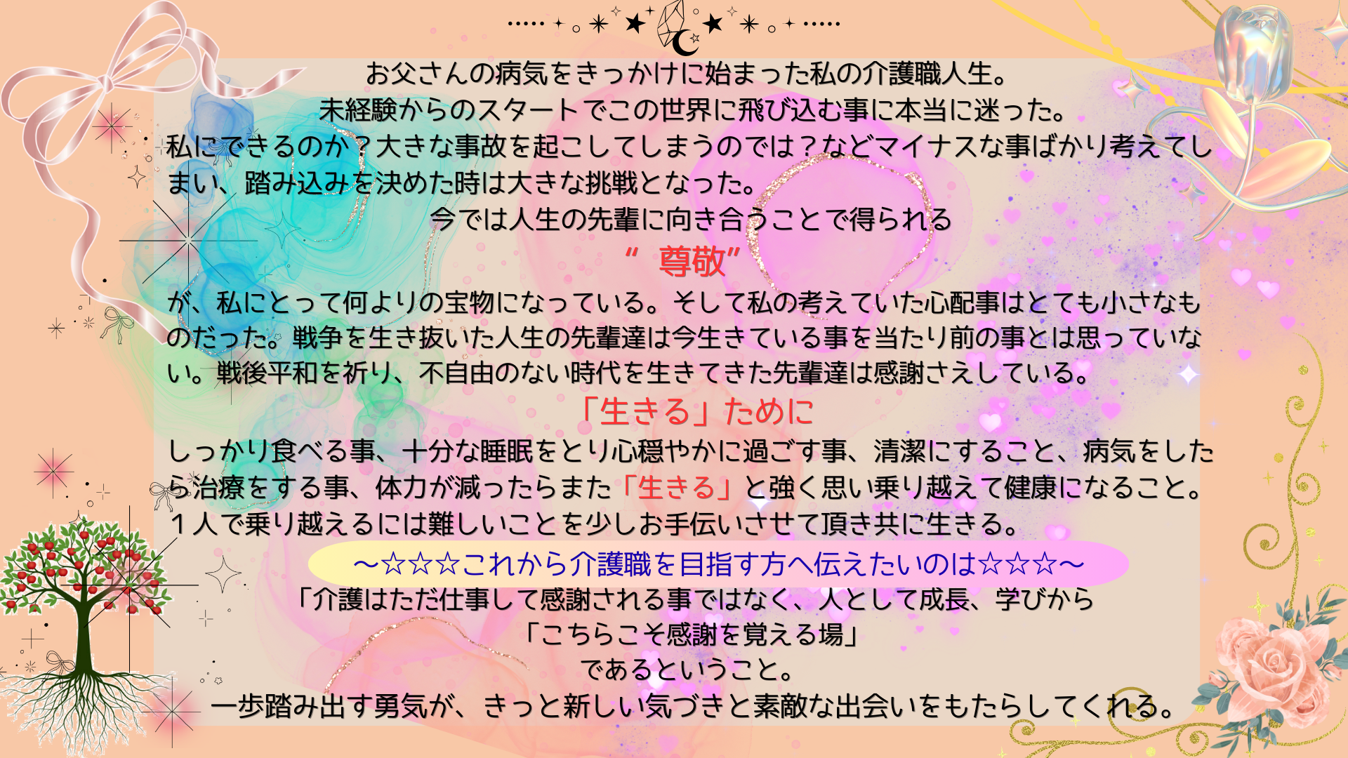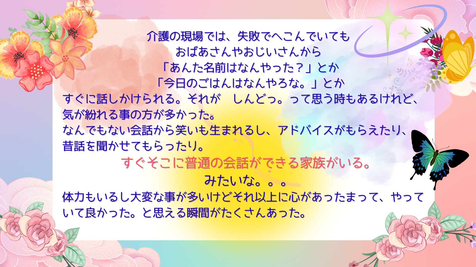 お父さんの病気がきっかけで介護職デビュー!見習いから始めた日々。